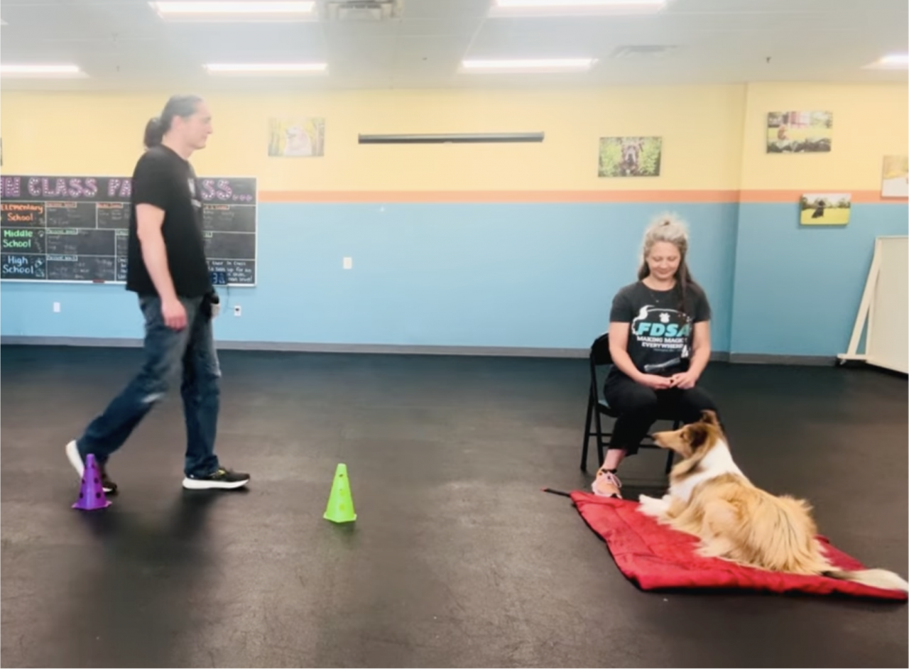 2. Once that skill is mastered, we can apply it to neutral helpers (NHs.) This process relies on classical conditioning—building a positive association to a NH approaching. As that association is built, it will naturally switch to an operant response when the dog discovers that they can point out the NH, using the skill that we had taught them with our NOs!